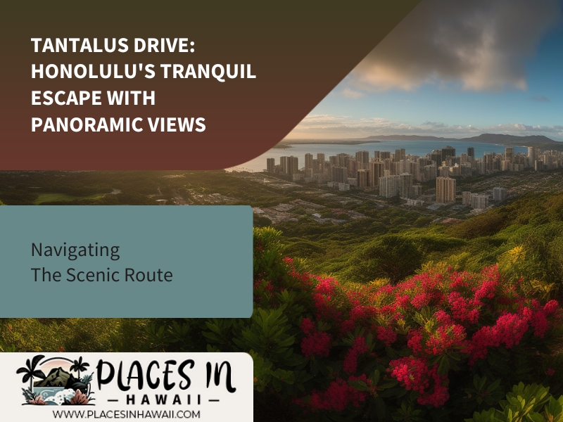 Tantalus Drive, situated on the lush and captivating island of Oahu, offers a serene respite from the bustling city life of Honolulu. This enchanting ten-mile loop traverses through dense rainforests and provides unparalleled panoramic vistas of both the city skyline and the mesmerizing Pacific Ocean. The tranquility and natural beauty that Tantalus Drive presents make it an idyllic destination for those seeking solace amidst nature while simultaneously experiencing breathtaking views.